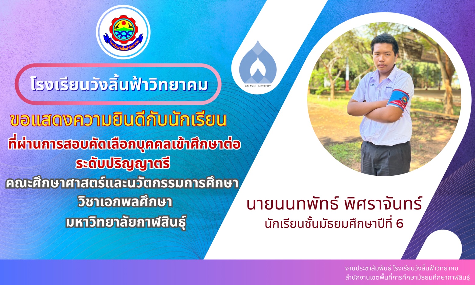 โรงเรียนวังลิ้นฟ้าวิทยาคม ขอแสดงความยินดีกับนักเรียนที่ผ่านการตัดเลือกเข้าศึกษาต่อในรดับอุดมศึกษา