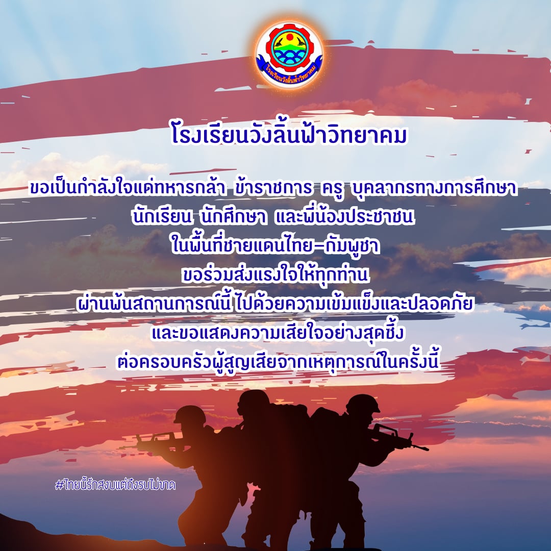 โรงเรียนวังลิ้นฟ้าวิทยาคม ขอส่งกำลังใจให้ทหารไทย